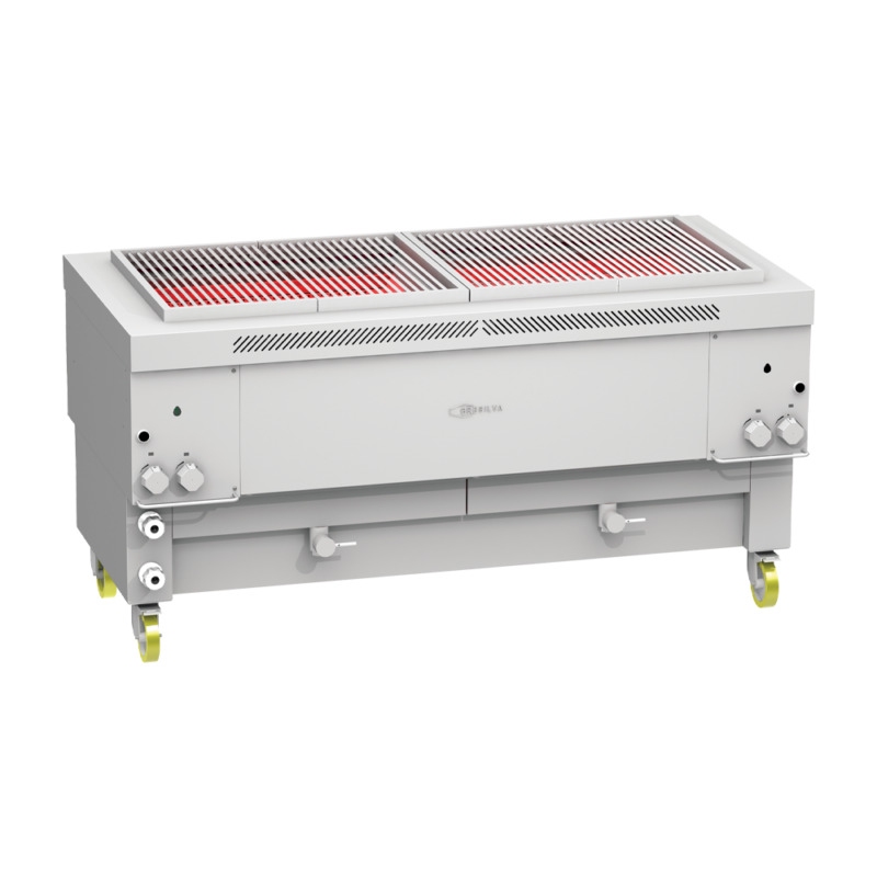 GRESILVA Mega Line Gazlı Yatay Izgara, geniş ızgara alanı sayesinde yoğun çalışan işletmeler için avantaj sağlar. Üst kısımda, ızgara yapılacak yiyeceklerin yerleştirildiği yatay olarak düzenlenmiş bir ızgara bulunur. Izgaranın alt kısmında yanlarda, konumları nedeniyle artıkların ve yağların suya serbestçe düşmesine izin veren, alevleri ve aşırı dumanı önleyen ısı kaynakları bulunur.