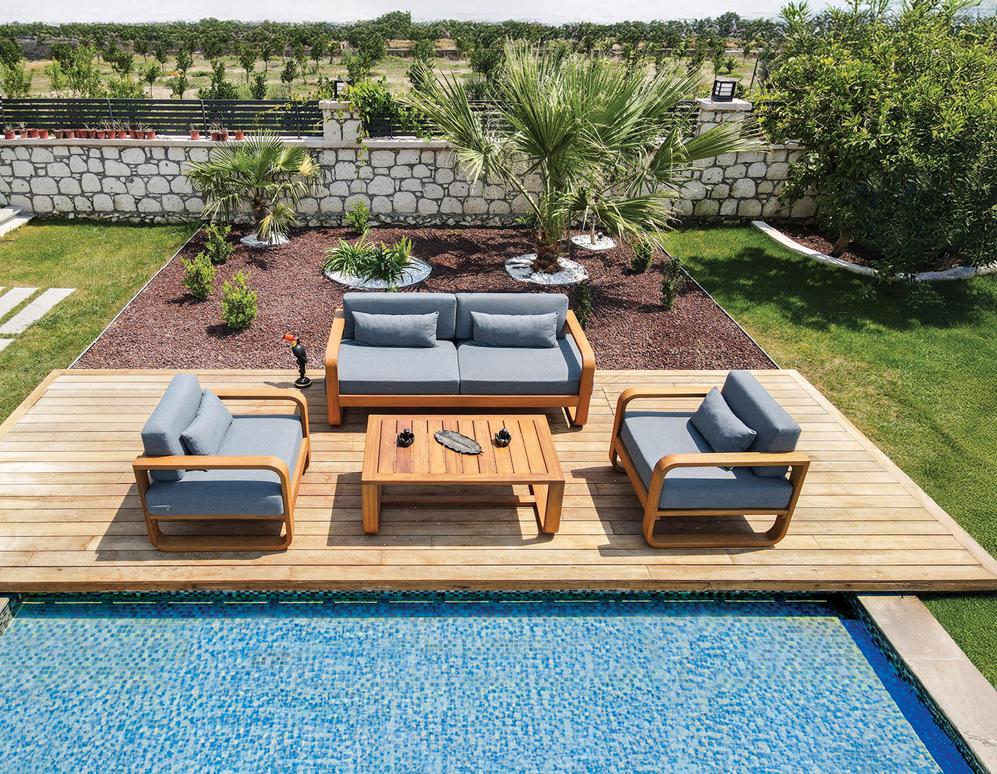Ürünümüz hem iç hem de dış mekanda kullanıma uygun ve dış mekanda kullanıma yönelik 2 yıl yasal yasal garantilidir. Oturma grubumuz ve sehpamız 1. sınıf fırın kurusu iroko ağacından oluşmaktadır. Üründe kullanılan ithal outdoor kumaş yaz-kış dış mekanda kullanıma yönelik 3 yıl garantilidir. Kumaşımız aynı zamanda UV ışınlarına yönelik dayanıklı olma ve su itme özelliğine sahiptir. Herhangi bir solma ve renk akıntısı yapmamaktadır. Minderler 32 danste süngerden oluşmaktadır. Yastıklar blok süngerden oluşmakta ve yastık kılıfı çıkarılıp yıkanabilmektedir.