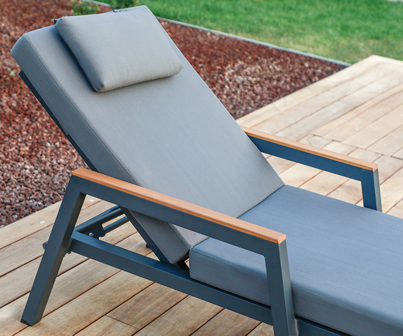 Şezlongumuz 2mm kalınlığında termik alüminum malzemeden üretilmiştir. Ürün kollarında 1. sınıf fırın kurusu iroko ağacı malzeme bulunmaktadır. Boyama öncesinde kromat kaplama yapılmakta, ardından ise elektrostatik toz boya ile boyanmaktadır. Üründe kullanılan ithal outdoor kumaş yaz-kış dış mekanda kullanıma yönelik 3 yıl garantili olup solma ve renk akıntısı yapmamaktadır. Ürün UV ışınlarına karşı dayanıklı olup, bakımı kolaydır. Şezlongumuzda 32 danste sünger kullanılmıştır. Dış mekanda kullanıma yönelik 2 yıl yasal garantilidir.