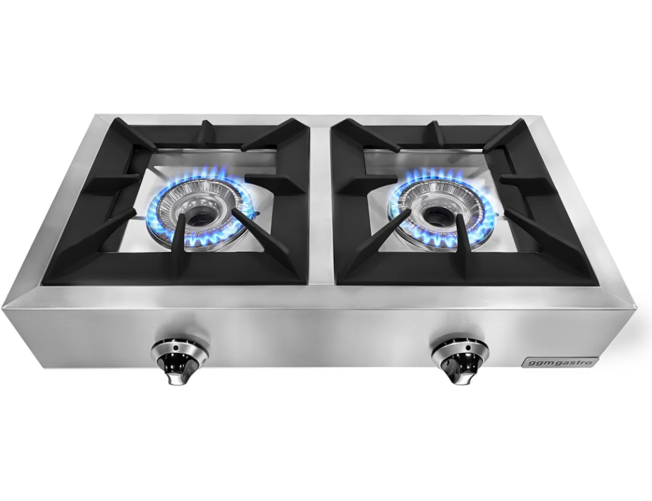 Tasarım Gazlı ocak Profesyonel kullanım için ideal Setüstü kullanım Valf musluğu ile kontrol Yüksek performans Standart olarak propan gazı, ancak ünite isteğe bağlı olarak doğalgaza dönüştürülebilir Yüksekliği ayarlanabilir paslanmaz çelik ayaklar Kompakt ve yerden tasarruf imkanı Kolay kullanım Kalite Yüksek kalite Paslanmaz çelik AISI 304 gövde Ateş emayeli dökme demirden yapılmış alev ayırıcılı Ocak gözü 2 brülör Bağlantı Propan ve doğal gaz için uygun Güç: 11 kW Boyutlar Dış boyut: G x D x Y: 770 mm x 400 mm x 170 mm Teslimat kapsamı Doğal gaz ve propan gazı memeleri ile teslimat Yönergeler Hijyen ve güvenlik kurallarına uygun olarak üretilmiştir. CE standartlarına uygun üretilmiştir Ürün Avrupa gıda standartlarına uygundur