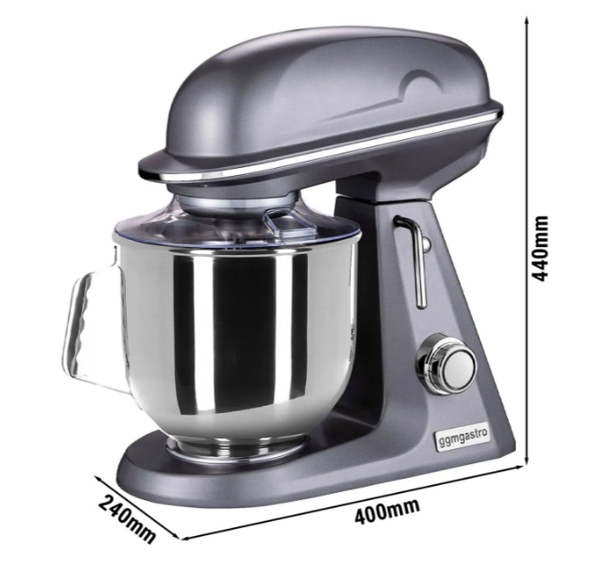 Tasarım: Setüstü Renk: Gri Pratik ve çok yönlü kullanım Güçlü planet mikser Yüksek stabilite -& Kaydırmaz 11 Hız seviye(ler)i Planet dişli Su ısıtıcısı çıkarılabilir ve açılabilir karıştırıcı Sıçratma koruması Özellikle fırınlar ve pizzacılar için uygundur Hamur, krema, yumurta vb. için uygundur. Sadece küçük miktarlarda hamur için uygundur Önerilen dolum miktarı: 4,90 kg Teslimat kapsamı Hamur kancaları - örn. Maya veya ekmek hamuru gibi ağır hamurlar için Düz karıştırıcı - Daha büyük miktarlarda hamur için de dengeli karıştırma Paslanmaz çelik çırpma teli - kabarık bisküviler ve büyük yumurta akı için Paslanmaz çelik kazan (çıkarılabilir) Detaylar Bağlantı Elektrik bağlantısı: 1N/PE / 230V / 50 Hz Güç: 350 Watt Boyutlar Dış boyutlar G x D x Y: 400 mm x 240 mm x 440 mm Yönergeler Hijyen ve güvenlik kurallarına göre üretilmiştir CE standartlarına uygun üretilmiştir Ürün Avrupa gıda standartlarına uygundur