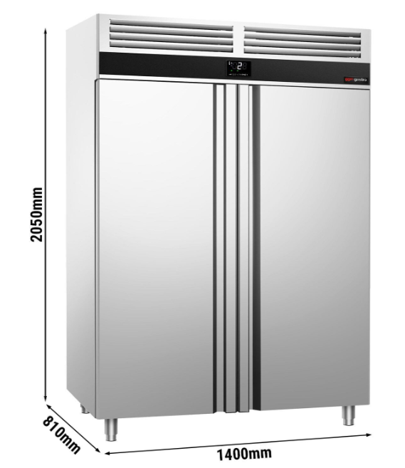 ENERJİ TASARRUFU Geliştirilmiş evaporatör ve fan sayesinde artırılmış verimlilik Bir önceki modele kıyasla %67 enerji tasarrufu Ürün avantajları Kolay bakım ve temizlik için monoblok soğutma sistemi Monoblok soğutma sistemi sayesinde benzer cihazlara göre 100 litre daha fazla kullanılabilir hacim Dahili fan sayesinde buz çözme süresini önemli ölçüde azaltan optimize edilmiş buz çözme döngüsü Daha kolay kullanım için açık tutma işlevine sahip kendiliğinden kapanan kapı(lar) Tasarım PREMIUM sürüm Kullanım hacmi: 1.400 l EVCO ekranı Tam paslanmaz çelik kapılar Yüksekliği ayarlanabilir paslanmaz çelik ayaklar Ön panelin arkasında ünite Sessiz çalışma İç aydınlatmalı Kalite Yüksek kalite Paslanmaz çelik AISI 304 gövde ve kapılar Kapı, güvenli kullanım için manyetik bir conta ve yavaşça kapanan bir kapı mekanizması ile donatılmıştır. Manyetik conta daha kolay temizlik için kolayca çıkarılabilir Paslanmaz çelik ayaklar Paslanmaz çelik iç kısım AISI 304 Bizim önerimiz Kontrol modülü ürün no. WMKEV (Wifi) veya BMKEV (Bluetooth) Kesintisiz sıcaklık izleme sayesinde artık hem personel rahatlıyor hem de manuel sıcaklık kaydına asla gerek kalmıyor Gıda kontrol otoritesi (HACCP) için günlük sıcaklığın otomatik olarak belgelenmesi Soğutma Hava dolaşımlı soğutma - cihaz içinde daha iyi sıcaklık dağılımı Son derece güçlü soğutma motoru Otomatik defrost Sıcaklık aralığı: -2 °C ila 8 °C Soğutucu: R290 Soğutma bölmeleri 2 kapılı 1 soğutma bölmesi 6 ızgara raf(yüksekliği ayarlanabilir) Maksimum 25 kg yük kapasitesi Bağlantı Güç: 267 Watt Elektrik bağlantısı: 240 Volt / 1N/PE / 50 Hz Boyutlar Dış boyut: G x D x Y: 1.400 mm x 810 mm x 2.050 mm İç boyut G x D x Y: 1.283 mm x 687 mm x 1.500 mm Teslimat kapsamı 6 ızgara raf 6 ray çifti Yönergeler Hijyen ve güvenlik kurallarına uygun olarak üretilmiştir. CE standartlarına uygun üretilmiştir Malzeme Avrupa gıda standartlarına uygundur