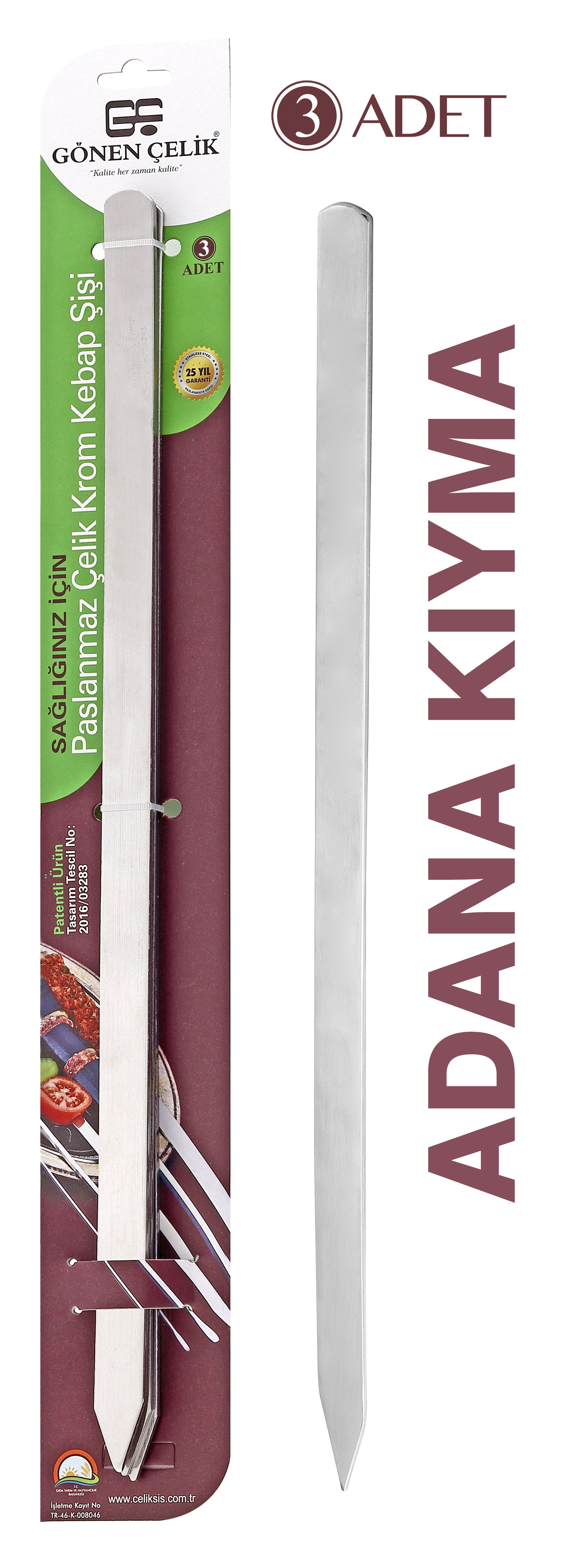Ürün paslanmaz çelikten üretilmiştir yıkanabilir bulaşık makinasına girer yıkanabilir Adana Kıyma kebabı için uygun bir ölçüdür.