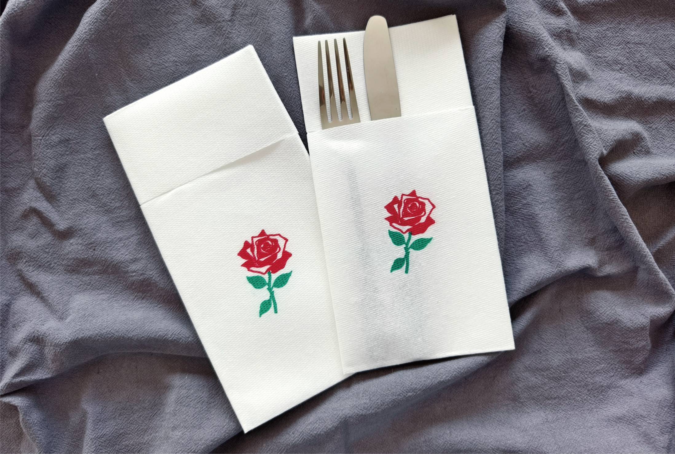 Napkin Napkins, logolarla ve diğer logolarla yazılabilir, iki çiçek ve dolu çiçek olan iki çiçek modelleriyle: kırmızı çiçek ve 200, 230, 270, 280, 300, 330, 400 gibi kullanılan çoklu boyutlar da. Çok güzel ve pratik değer.