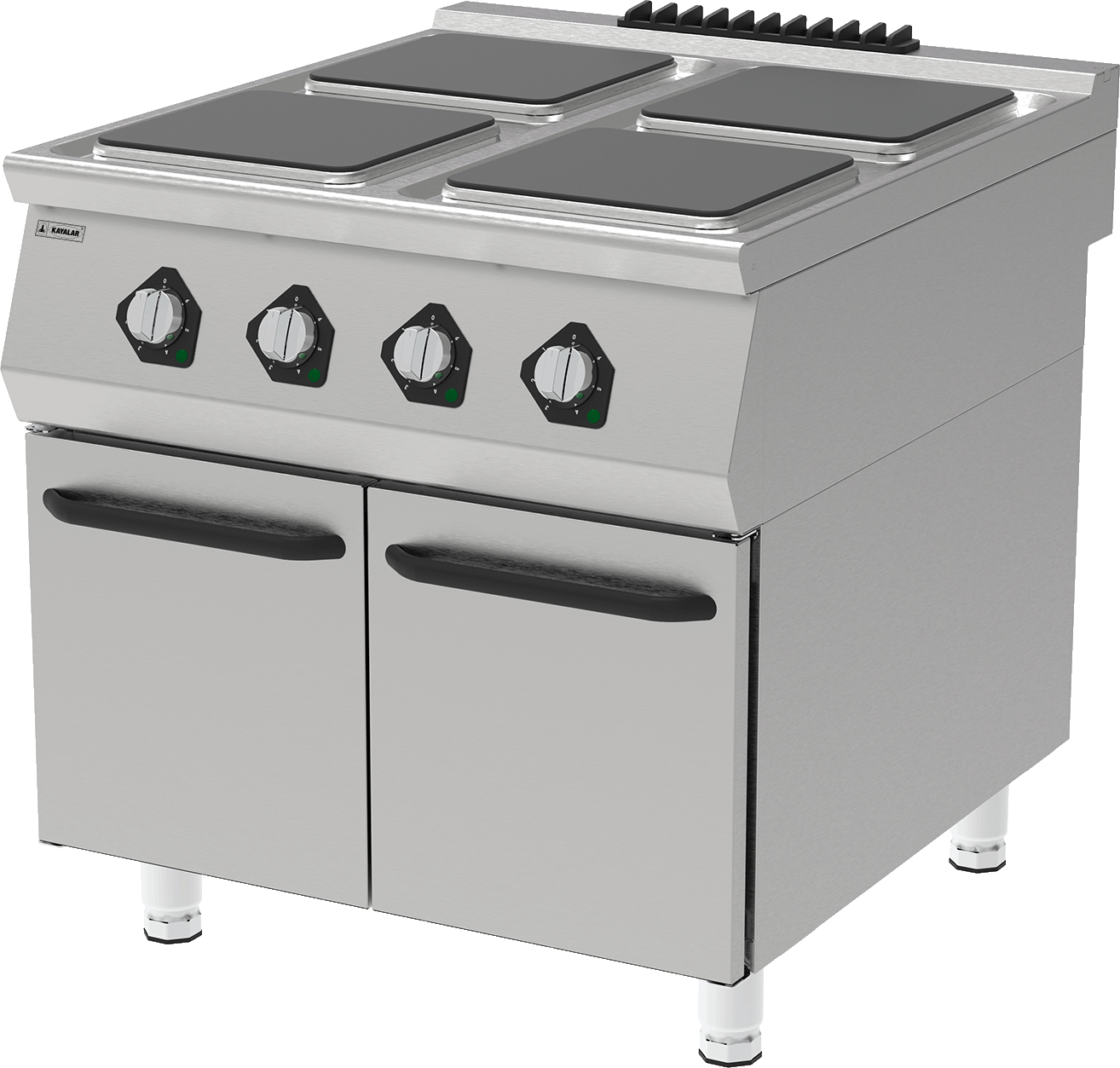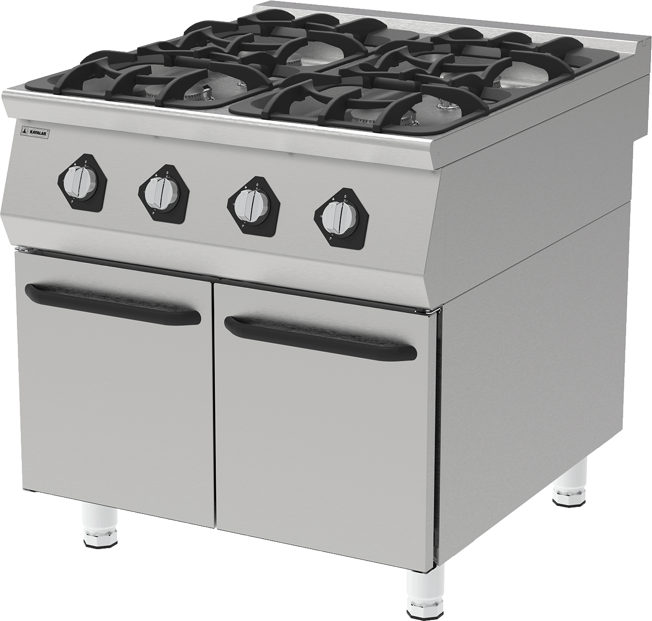 Lpg ve Doğalgaz ile çalışır. Brülörler primer ve seconder yanma özelliği sayesinde yüksek yanma veriminin yanında düşük atık gaz emisyonu ile dünya standartlarında ve çevrecidir. Her brülör için kazayla sönmeye karşı gaz kesme kiti ve pilot içeren magnet emniyet ventilli gaz muslukları bulunur. Değişik ölçülerde tencere kullanımına olanak sağlayacak şekilde tasarlanmış , ağır hizmet tipi ocak dökümleri teflon kaplıdır tTek parça basılmış AISI 304 kalite paslanmaz çelik üst tabla Derin çekme ocak tepsileri üst tabladan bağımsız olup , temizliğe en hızlı ve kolay çözümü getirirken, hijyenik bir pişirme alanı sağlar Fırın kapısı menteşe sistemi tek kollu olup maksimum güvenlik sağlamasının yanında iki kademeli menteşe sistemi kapı seviyelendirmesi imkanı sayeseinde kullanım kolaylığı sağlar Yekpare fırın gövdesi paslanmaz çelikten üretilmiştir ve fırın iç sıcaklığı magnet ventilli gaz valfi tarafından maksimum 300 °C sıcak kontrol edilebilir. Fırın kısmı GN 1/1 tepsi kapasiteli ve farklı konumlarda tepsi yerleştirme özelliğine sahiptir.