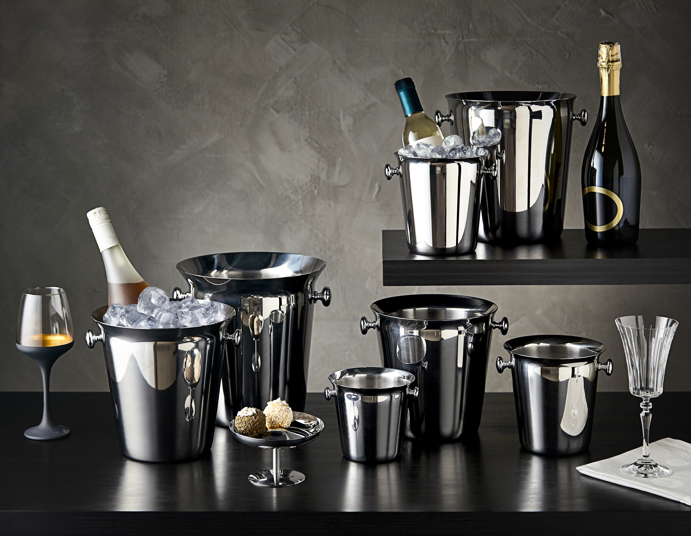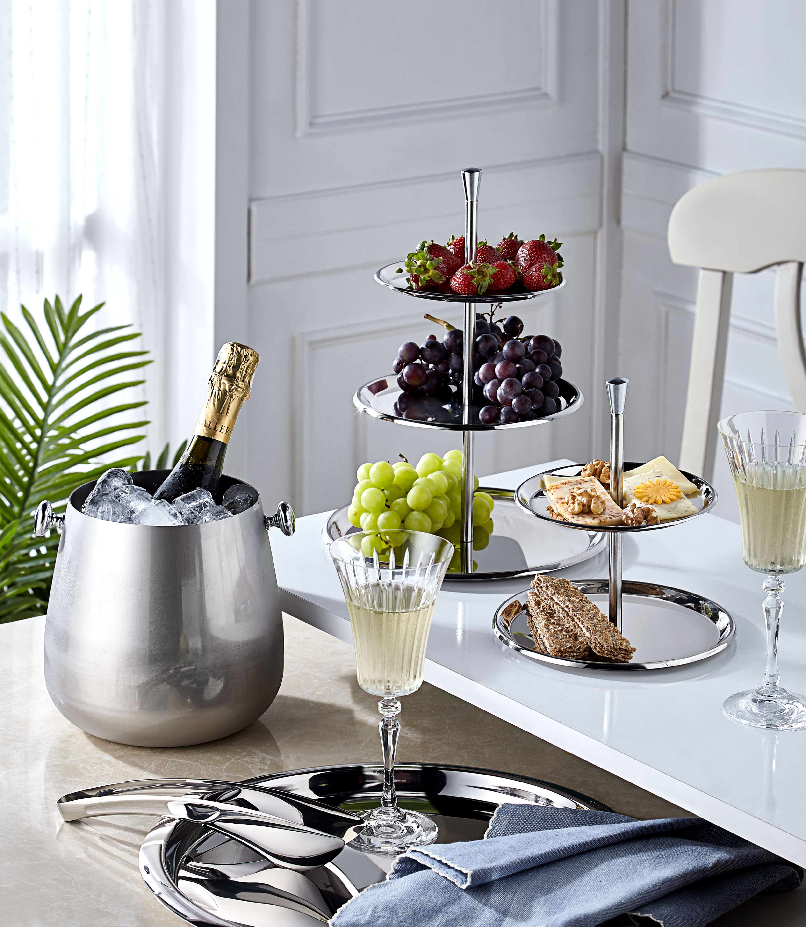 Paslanmaz çelikten üretilen buz kovası, ikramlık standları, tepsi ve servis maşaları ile sofranızı tamamlayabilirsiniz.