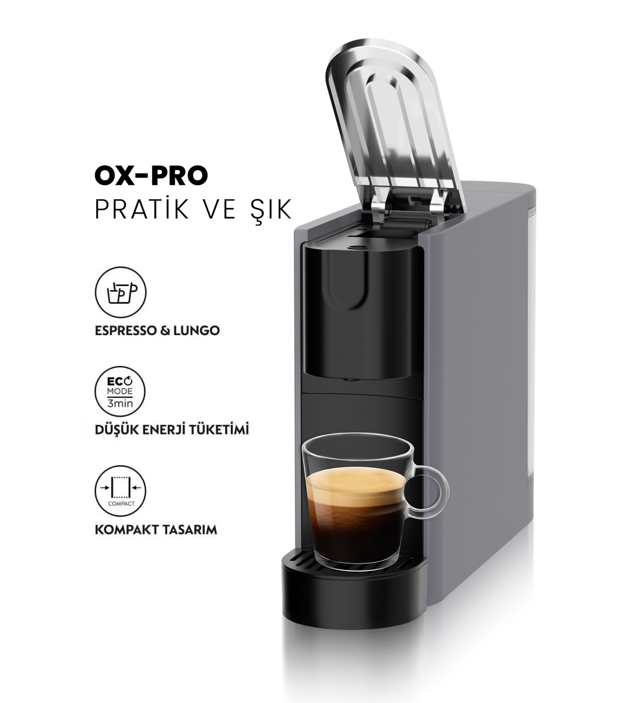 2 Farklı Ayarlanabilir Kahve Seçeneği: Espresso ve Lungo Yüksek basınç gücü sayesinde kahvenizin aromasını ve lezzetini en üst düzeyde hissedin. Her fincanda mükemmel krema ve yoğun tat garantisi. Ultra hafif ve ultra kompakt tasarımı sayesinde Omnex kahve makinesini dilediğiniz yere kolayca konumlandırabilir ve hareket ettirebilirsiniz. Küçük fincan (yaklaşık 40 ml) için 15 saniye, büyük fincan (yaklaşık 100 ml) için 35 saniyede hazır. 2 dakikadan sonra düşük enerji tüketimi ile çevre dostu kullanım. 5 dakika işlem yapılmadığında otomatik olarak kapanarak enerji tasarrufu sağlar. Orijinal Omnex kahve kapsüllerinin geri dönüştürülmüş alüminyumdan üretilir ve kapsüller sonsuz kez geri dönüştürülebilir. Kapsül toplama haznesinin kapasitesi: 6 kapsül Su tankının kapasitesi: 500 ml