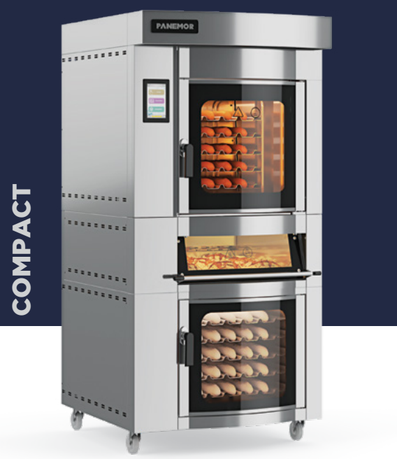 Farklı tipte ürün pişiren pastane ve market sektöründeki müşterilerimizin, talep ve beklentileri doğrultusunda üretilmiş olan Panemor Kompakt Fırın; konveksiyonlu fırın ve mini katlı fırını tek bir makine şeklinde bir araya getirmiştir