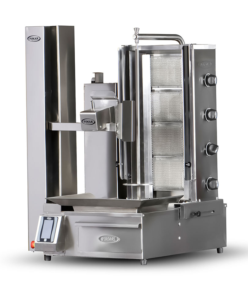 Monofaze veya trifaze elektrik besleme 2 kademeli ısınma Paslanmaz çelik gövde ve şiş Boru tipi rezistans Hijyenik, emniyetli, ısıya dayanıklı cam Motorlu şiş döndürme mekanizması