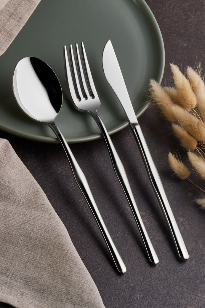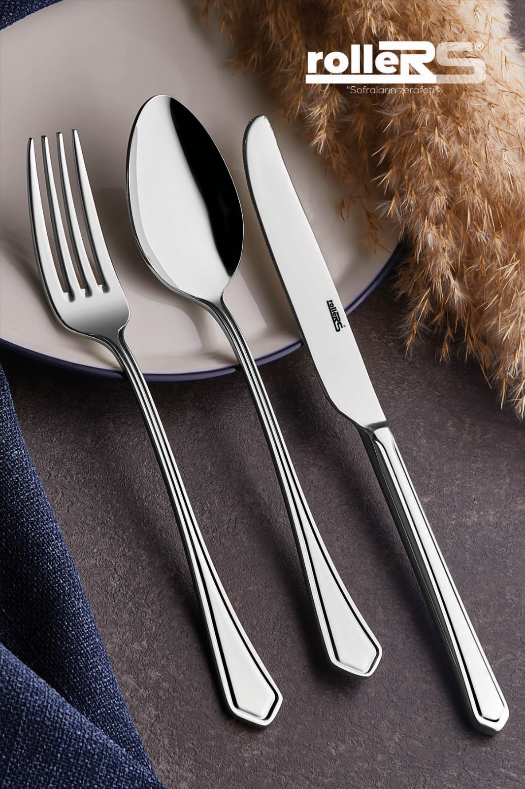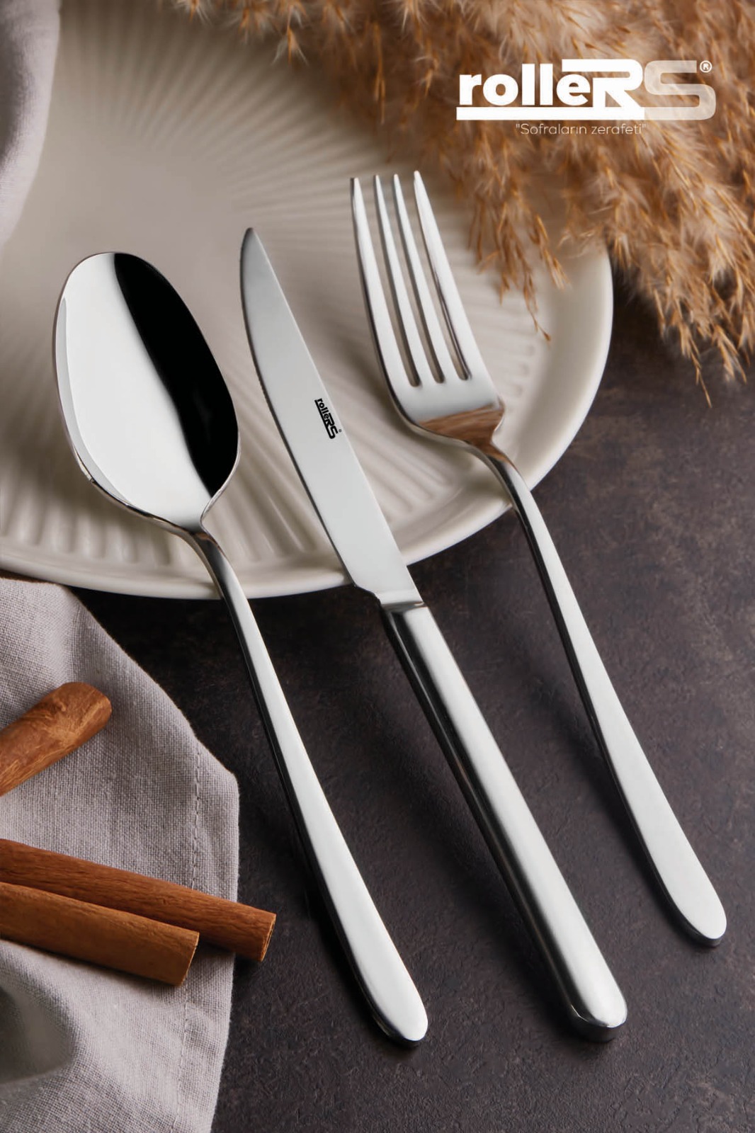 Petra çatal kaşık ve bıçak takımı. Otel, Restoran ve cafe lerde en çok tercih edilen modellerimiz arasındadır. .18/10 (304 kalite) birinci sınıf paslanmaz çelikten üretildi, dayanıklıdır ve pürüzsüzdür. Parlaklığını ve ışıltısını saf çeliğin doğal renginden alır ve ayrıca bir kaplama tekniği uygulanmamıştır. Şık sunumların güzelliği detaylarda gizlidir. Özenle ve emekle işlenmiş detaylar kendine hayran bırakır. Şık sunumlarınızın harika bir eşlikçisidir. Bulaşık makinesinde yıkanabilir. RolleRS nin ustaları tarafından Türkiye de üretilmiştir. Bir ömür keyifle kullanılabilir. birinci sınıf paslanmaz çeliği ile kusursuz işçilikle yorumlanan Petra çatal kaşık bıçak takımı tarzıyla sofralarınıza değer katacak.