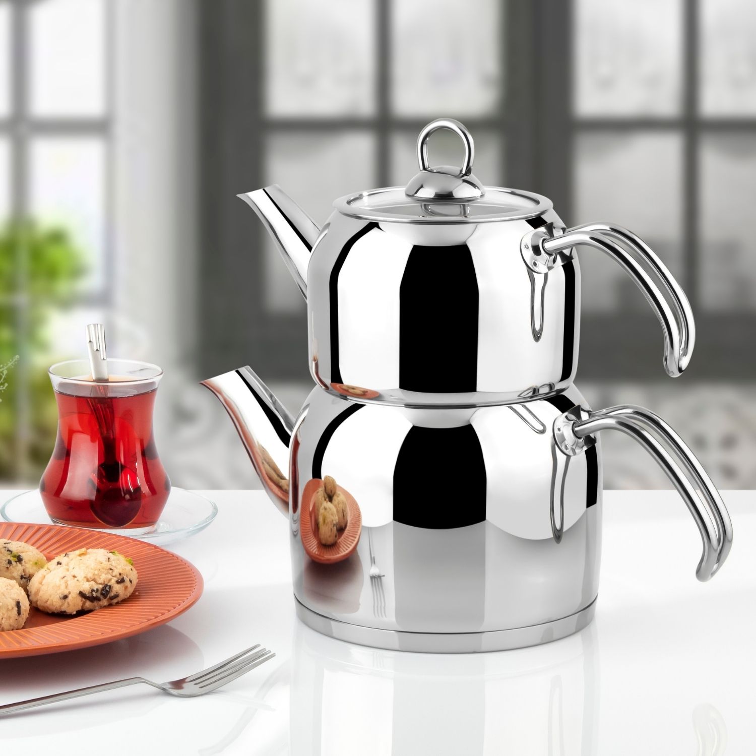 Deluxe Büyük Boy Çaydanlık Setimizle şık bir şekilde demleyin büyük toplantılar veya uzun süren keyifli çay ritüelleri için mükemmeldir. Yüksek kaliteli paslanmaz çelikten üretilen bu set uzun ömürlü performans sağlar.