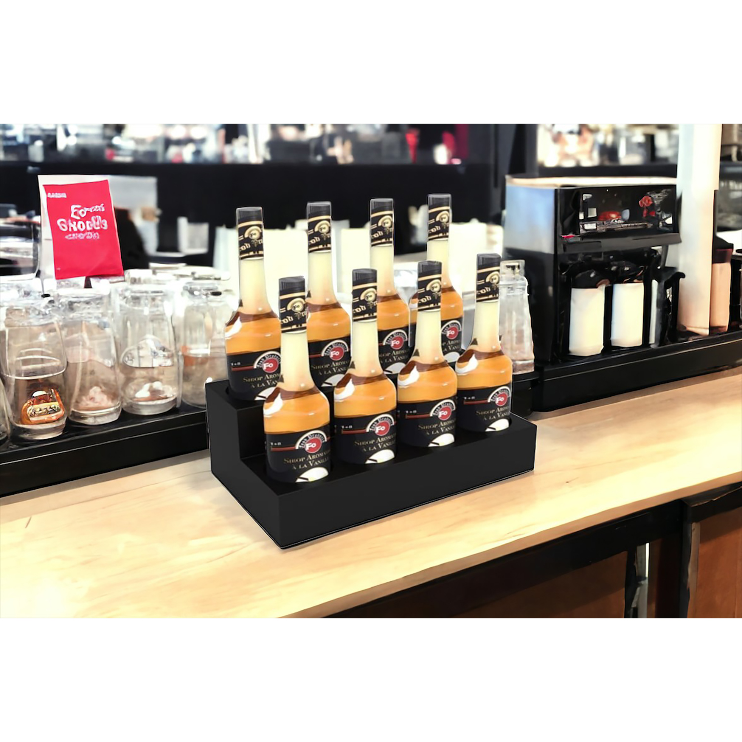Şurup Standları kahve, cafe, bar içeceklerinde kullanılan şurupların konumlandırılabileceği standlar, ihtiyaçlarınıza göre farklı ebatlarda tasarlanmıştır. Doğrudan stand üzerinden servis yapılmaya uygun dayanıklılıktadır.