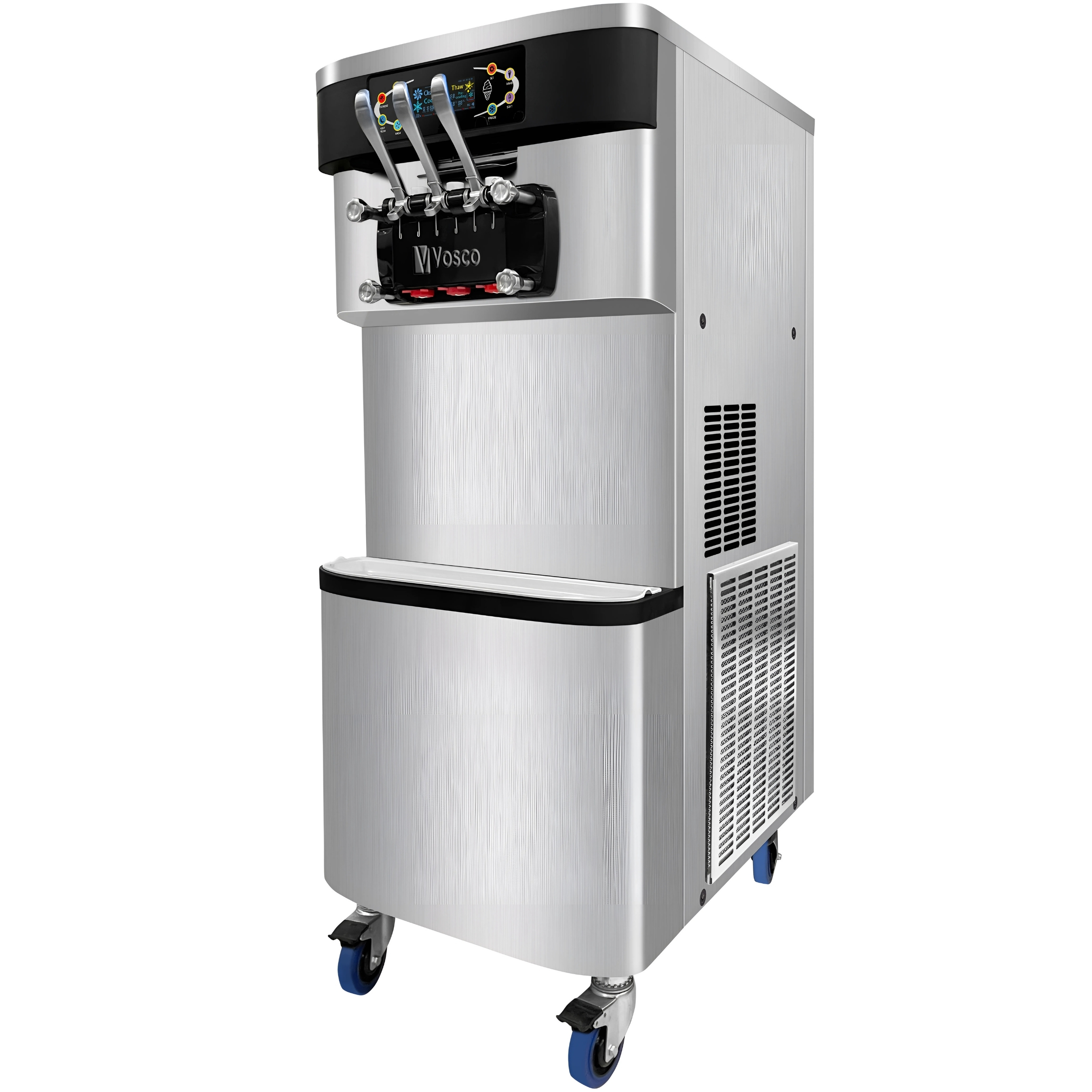 Vosco Üç Kollu Pro Soft Dondurma Makinesi, dondurma üretiminde hızlı, verimli ve profesyonel bir çözüm sunar. Paslanmaz çelik hazne ve gövdesi sayesinde hijyenik ve dayanıklıdır. 20L hazne kapasitesi ve 28-32L/gün üretim kapasitesi ile yoğun işletmeler için mükemmel bir tercihtir. Kompresörlü hava pompa sistemi, dondurmanın kıvamını mükemmel hale getirirken hızlı soğutma teknolojisi, düşük enerji tüketimi ve düşük gürültü seviyesi ile maksimum verimlilik sağlar. Üç kollu tasarımı, iki farklı aroma veya karışık dondurma seçenekleri sunarak çeşitliliği artırır. Öne Çıkan Özellikler: ✔ 2400W Güçlü Motor Üstün performans ve hızlı soğutma ✔ 20L Hazne Kapasitesi Yüksek üretim için geniş hazne ✔ Üretim Kapasitesi: 28-32L/Gün Yoğun işletmeler için ideal ✔ Paslanmaz Çelik Gövde ve Hazne Dayanıklı, hijyenik ve uzun ömürlü ✔ Hızlı Soğutma & Enerji Tasarrufu Düşük gürültü seviyesi ile verimli çalışma ✔ Kompresörlü Hava Pompa Sistemi Mükemmel dondurma kıvamı ✔ Üç Kollu Tasarım İki farklı aroma veya karışık dondurma üretimi Restoranlar, kafeler, oteller ve dondurma dükkanları için ideal bir çözümdür.