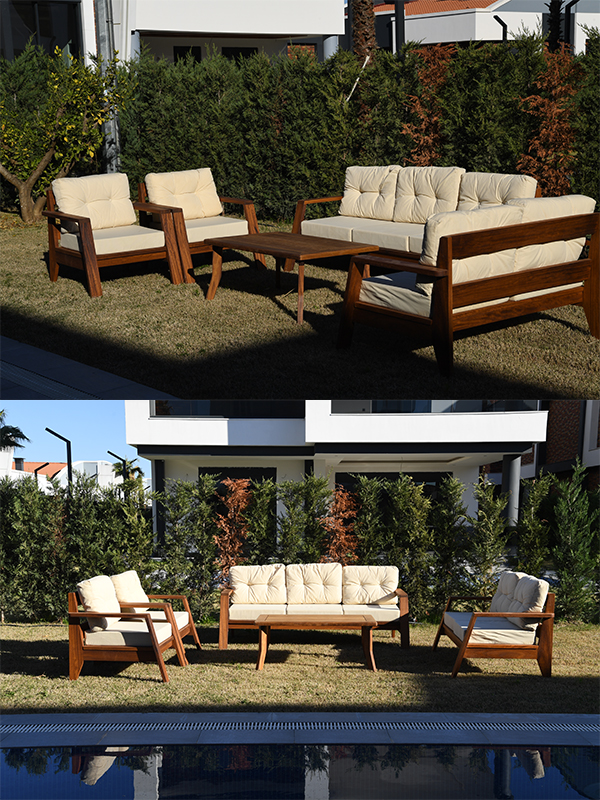 Bahçe mobilyaları konseptimizde ürünlerimiz Afrika kökenli İroko ağacından üretilmektedir. Dış mekan geniş ürün yelpazesinde Oturma gruplarımız, masa takımlarımız, şezlonglar, ahşap aksesuarlarımızın tamamı kendi tesislerimizde özel üretimdir